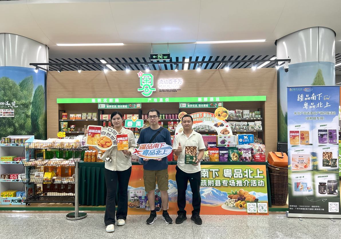 作为粤疆消费协作的核心项目,“疆品南下,粤品北上”自启动以来,始终以“打破地域壁垒、激活双向价值”为核心目标,搭建跨区域产业协作的“空中走廊”。此次番禺地铁站专场,正是项目价值的生动落地:南方优品发挥“媒体资源整合+产销对接网络”优势,前期深入疏附县核心产区,筛选出“中国巴旦木之乡”的特级巴旦木、杏脯、核桃、开心果、沙棘汁等12类特色产品,同步搭建“线上小程序下单+线下地铁选购”联动体系,通过媒体矩阵讲述疏附产业故事;广东军威实业集团则依托“粤港澳大湾区(广州)乡村振兴产业协作基地”资源,负责地铁门店展销区搭建、冷链仓储补给及现场服务,将流通环节从传统“7天+”压缩至“3天内”,确保疏附疆品以最新鲜状态抵达市民手中。“项目不是单向的‘疆品输出’,而是‘粤疆资源互哺’。”南方优品相关负责人表示,“疆品南下”解决疏附县“好货出山难”问题,“粤品北上”则将广东益宝林新会陈皮、广式金谷月饼等地理标志产品引入新疆,这种“双向流通”模式,打破了传统“产地卖原料、销地买成品”的单一链路,实现了“1+1>2”的资源互补效应。